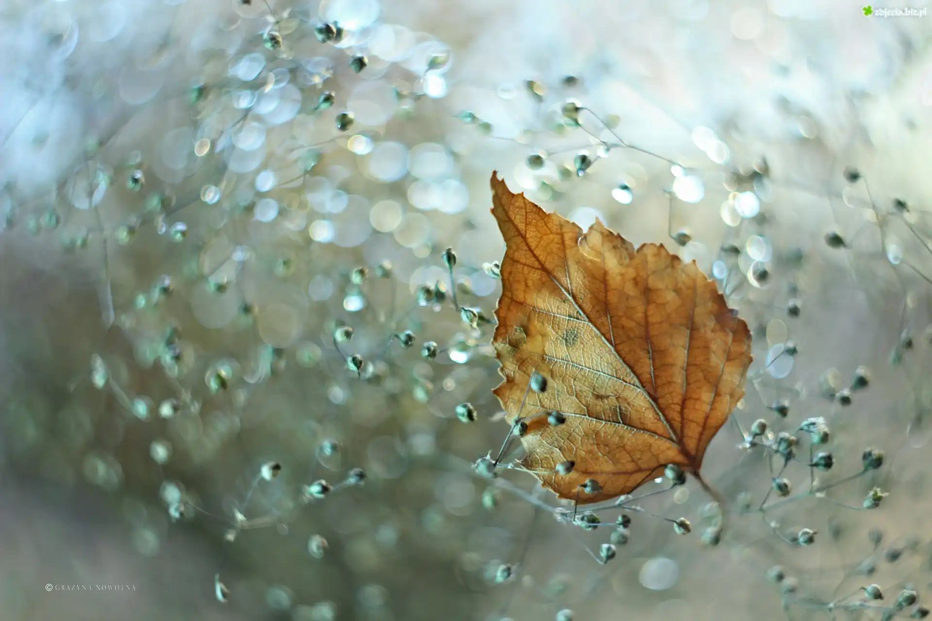 Zdjęcie Żółty, Suchy, Liść, Bokeh