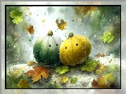 Zdjęcie, Dwie, Dynie, Jesienne, Liście, Grafika, AI