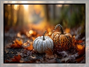 Zdjęcie Dwie, Dynie, Suche, Liście, Grafika AI