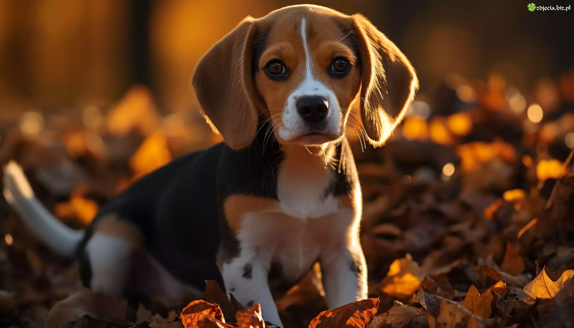 Zdjęcie Beagle, Pies, Szczeniak, Liście, Grafika AI