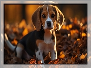 Zdjęcie, Beagle, Pies, Szczeniak, Liście, Grafika AI