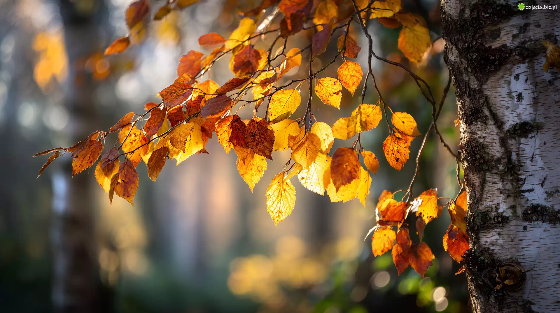 Zdjęcie, Jesienne, Liście, Brzoza, Grafika AI