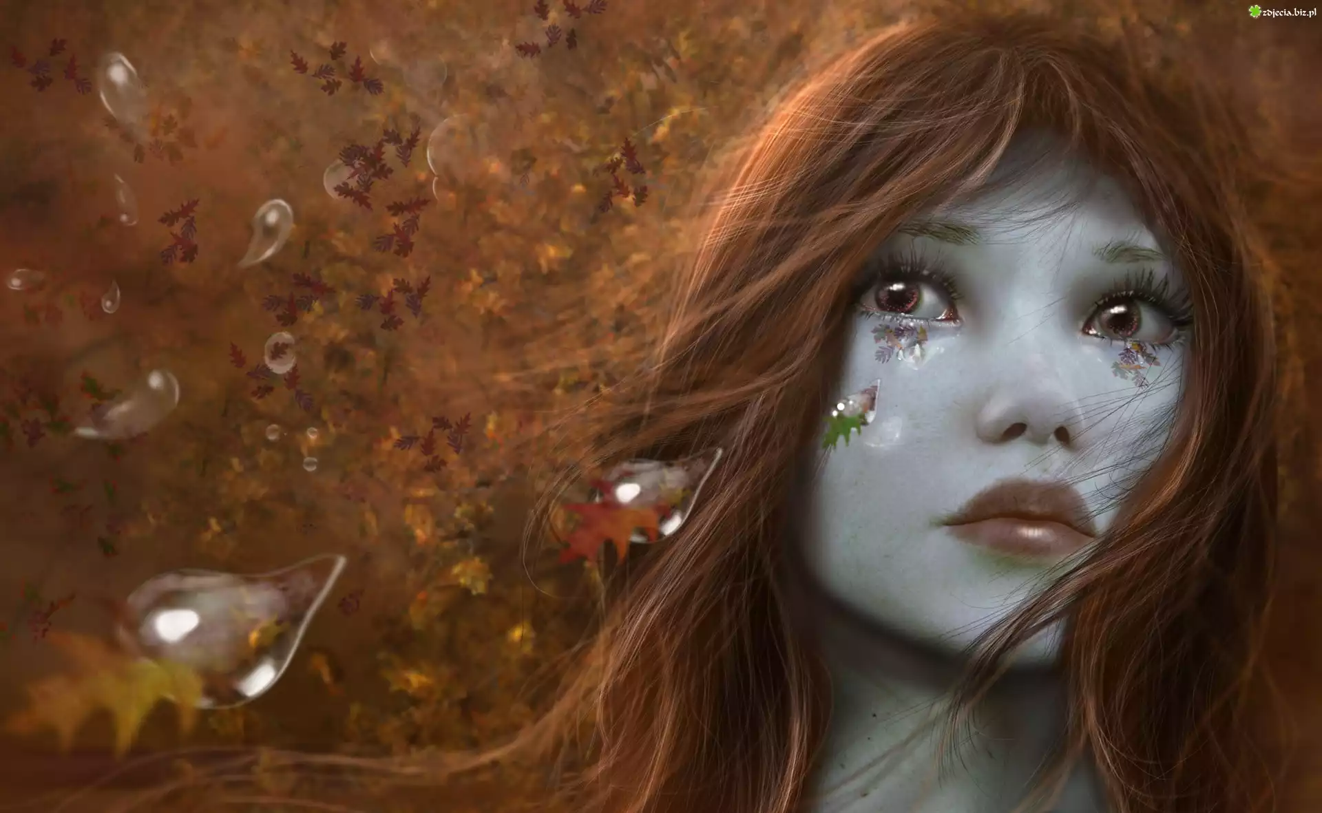 Zdjęcie Dziewczyna, Liście, Grafika