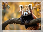 Zdjęcie, Pandka ruda, Gałąź, Liście, Jesień, Grafika AI