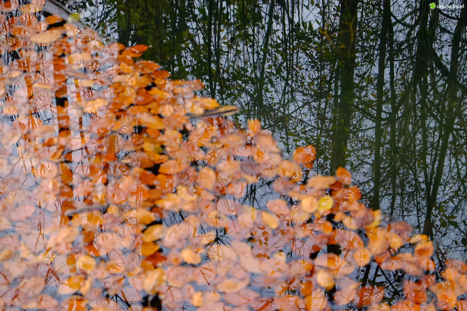 Zdjęcie Liście, Kałuża, Odbicie, Jesień, Deszcz