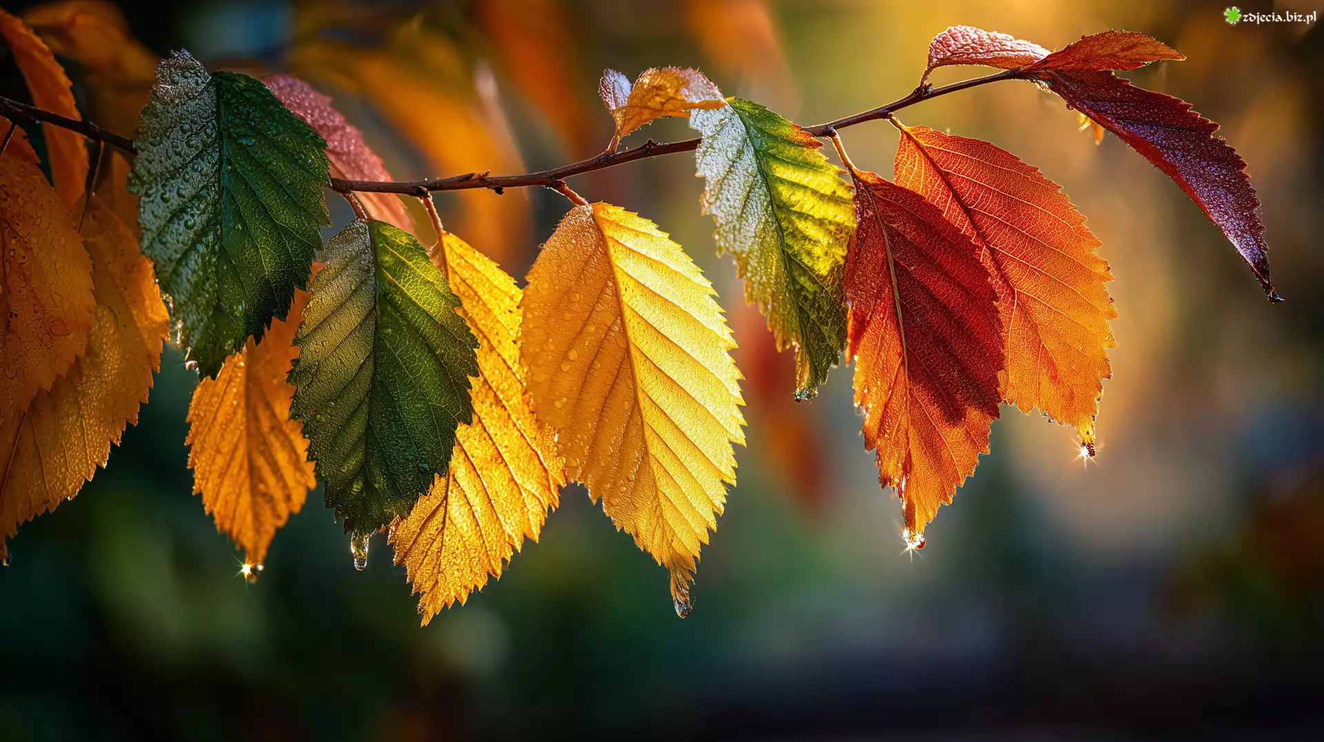 Zdjęcie Jesienne, Liście, Krople, Grafika, AI