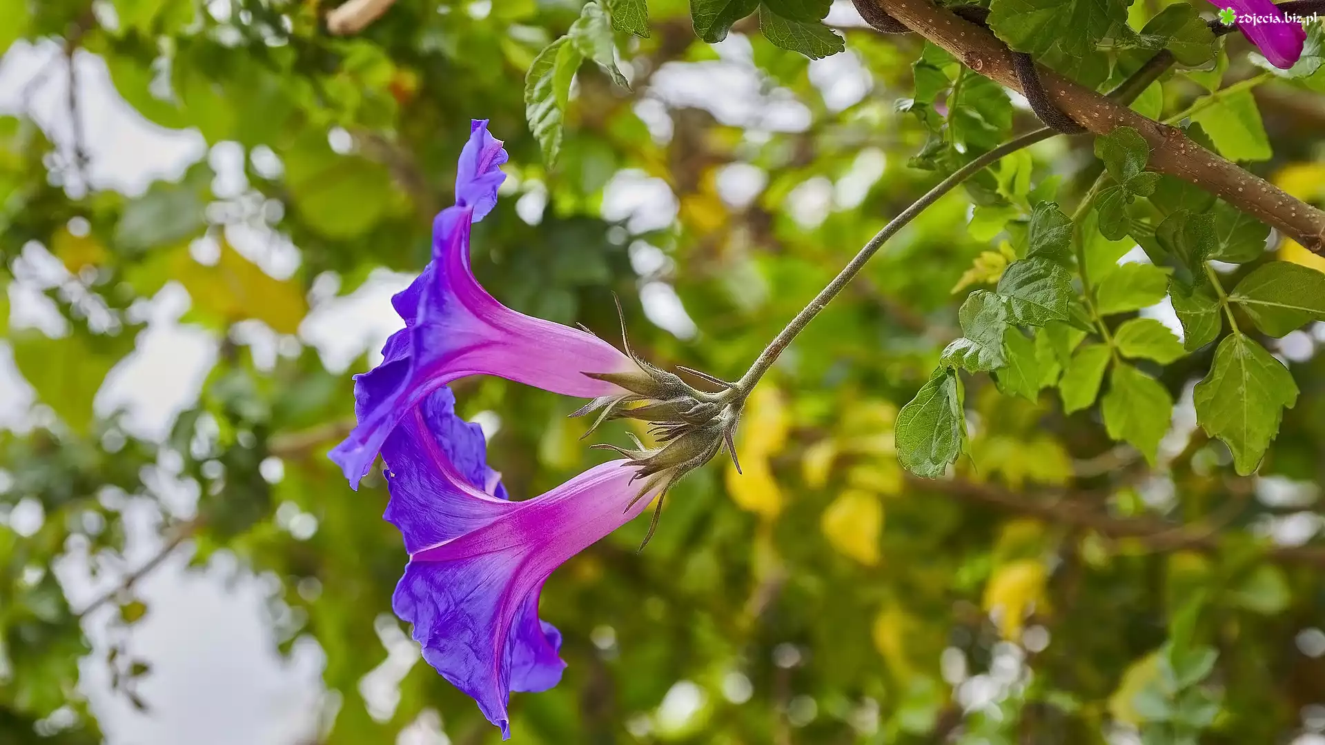 Zdjęcie Kwiaty, Powój, Gałązka, Liście