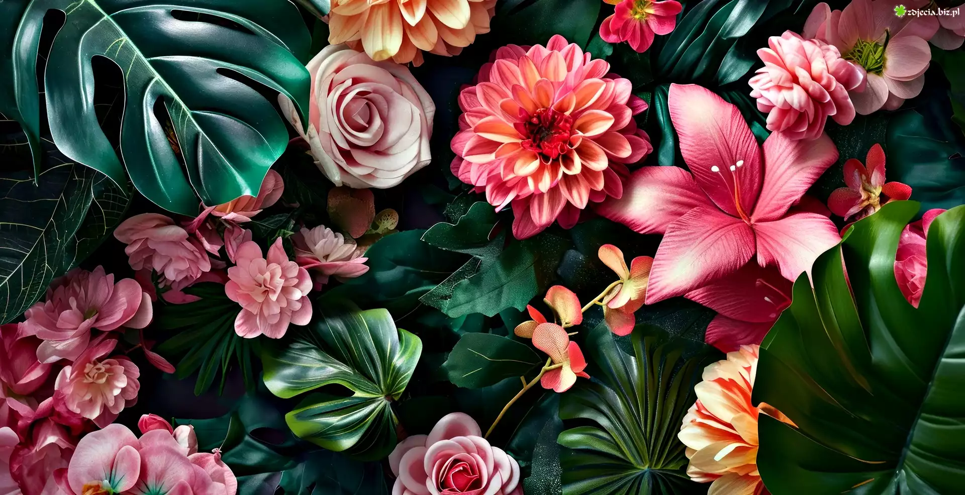 Zdjęcie Zielone, Liście, Kwiaty, Kolorowe, Grafika