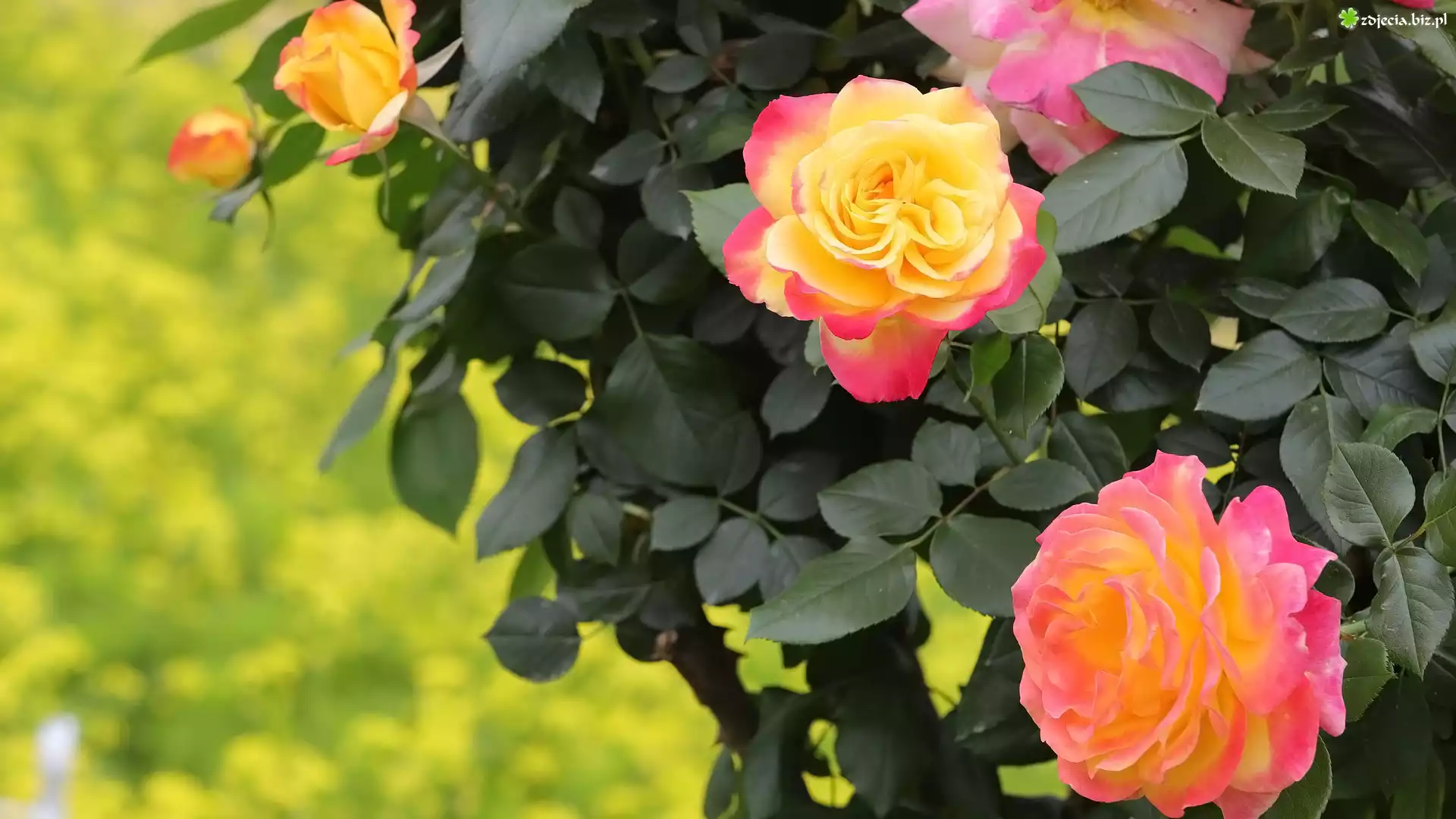 Zdjęcie Kwiaty, Dwukolorowe, Róże, Liście