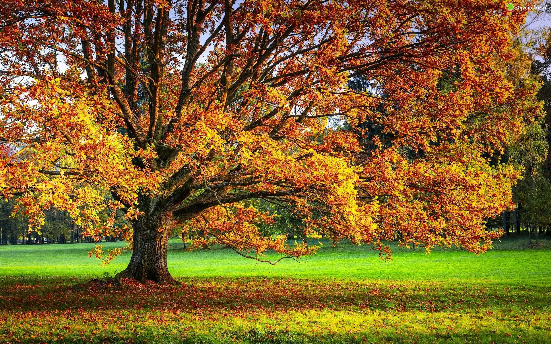 Zdjęcie Łąka, Drzewo, Jesień, Liście