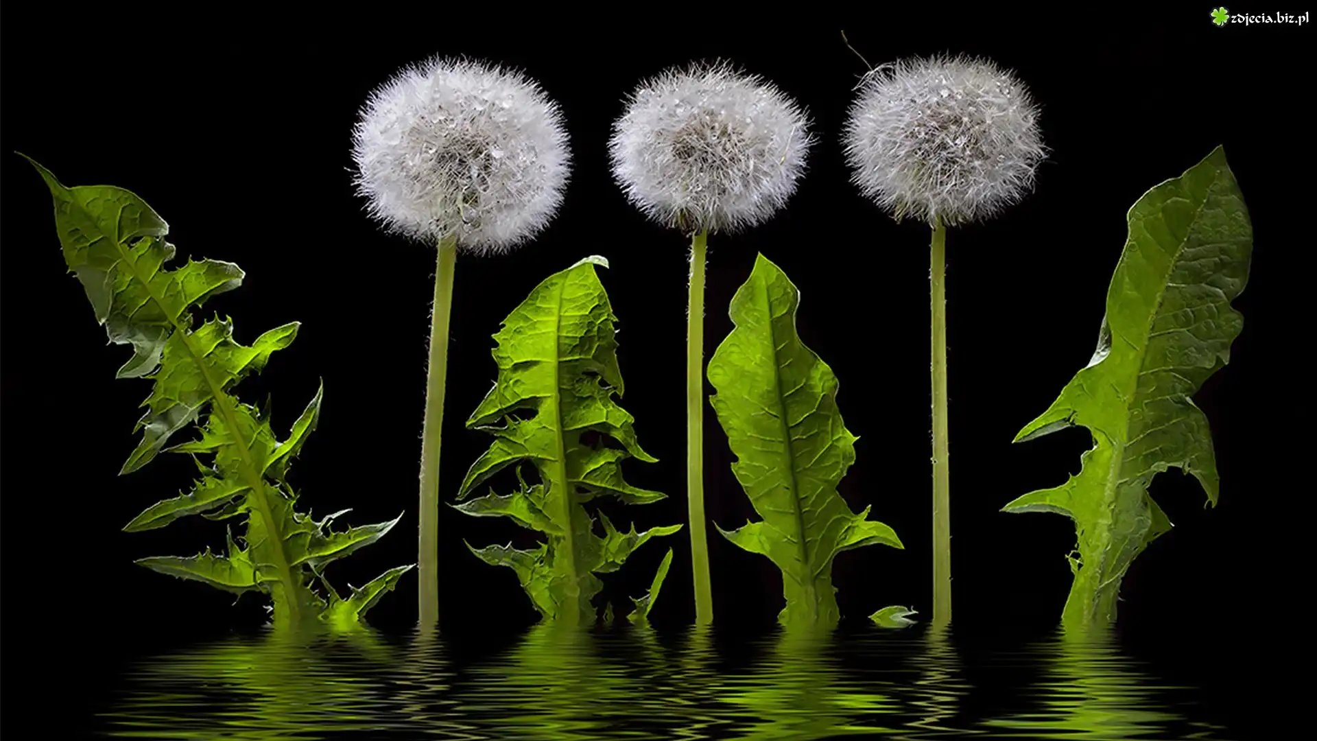 Zdjęcie Mniszek, Liście, Woda