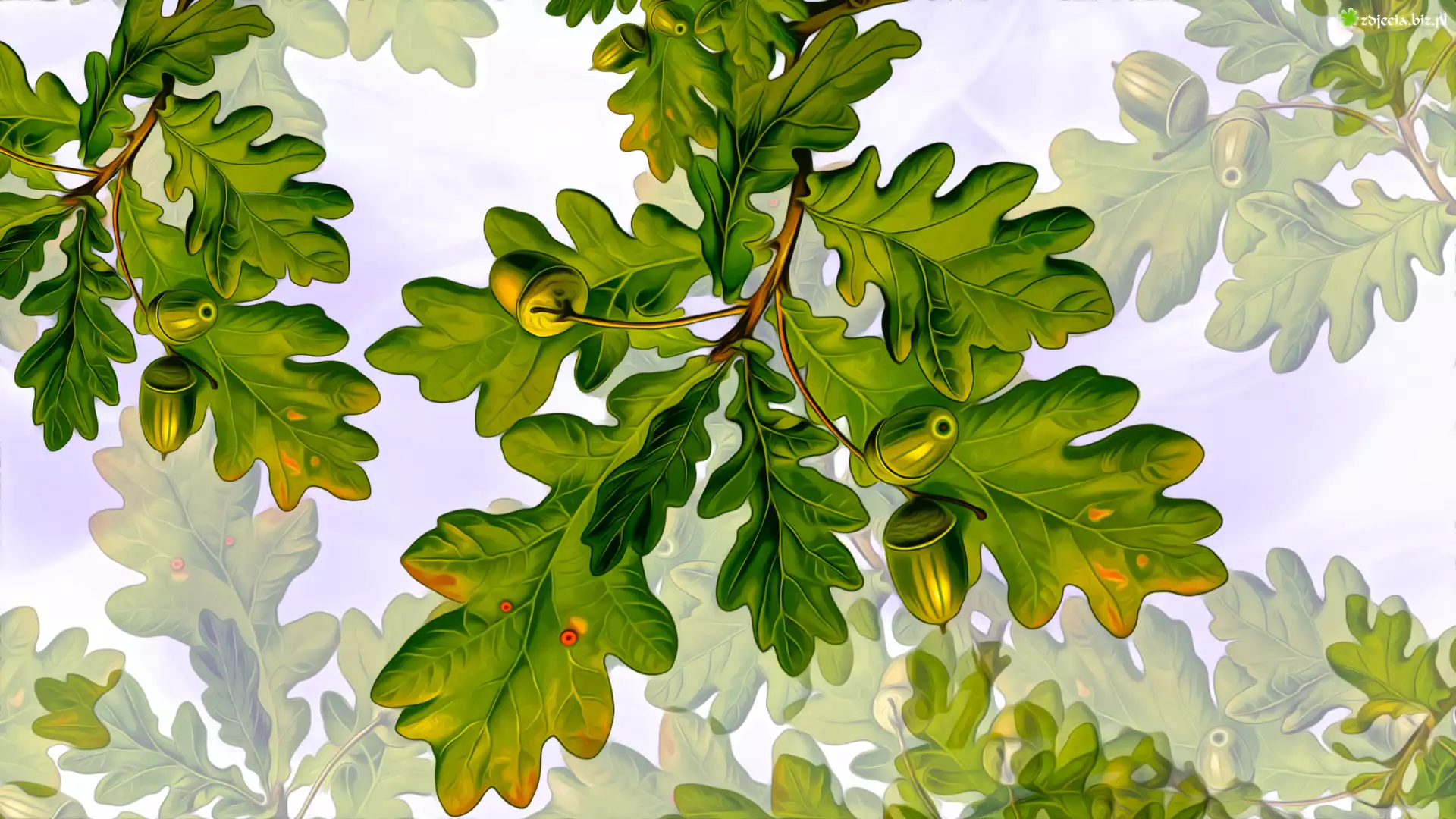 Zdjęcie Liście, Dąb, Żołędzie, Grafika