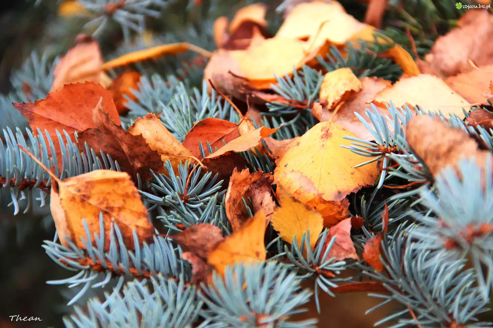 Zdjęcie Świerk, Srebrzysty, Suche, Liście, Jesień
