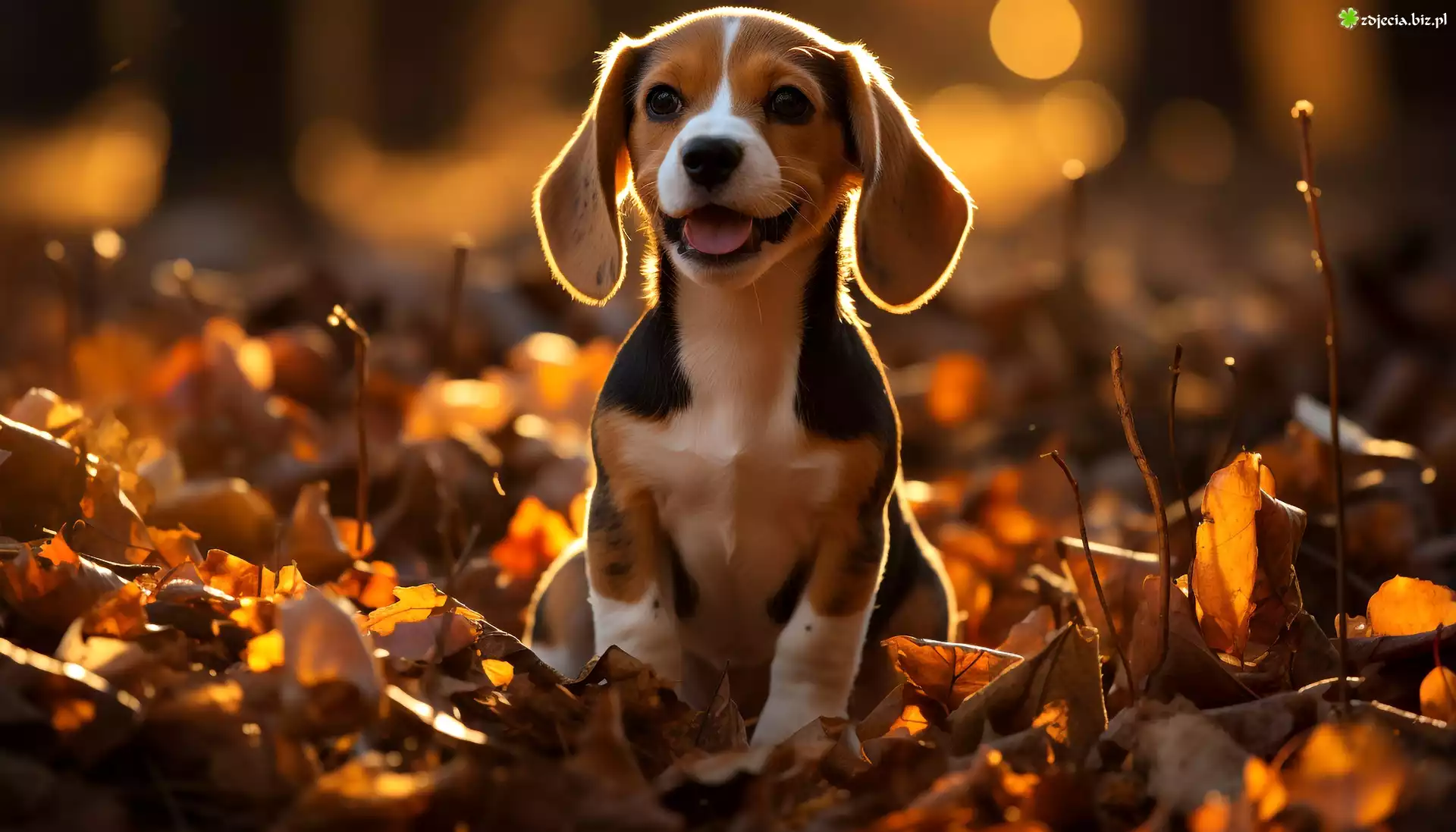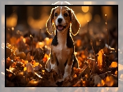 Zdjęcie Pies, Beagle, Szczeniak, Liście, Jesień, Grafika AI