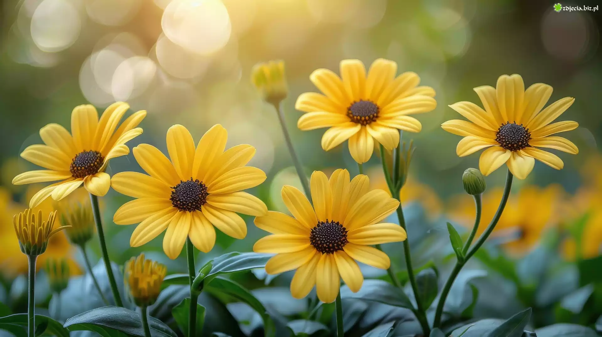 Zdjęcie Żółte, Rozkwitnięte, Kwiaty, Liście