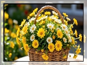 Zdjęcie Żółte, Białe, Kwiaty, Listki, Wiklinowy, Koszyk