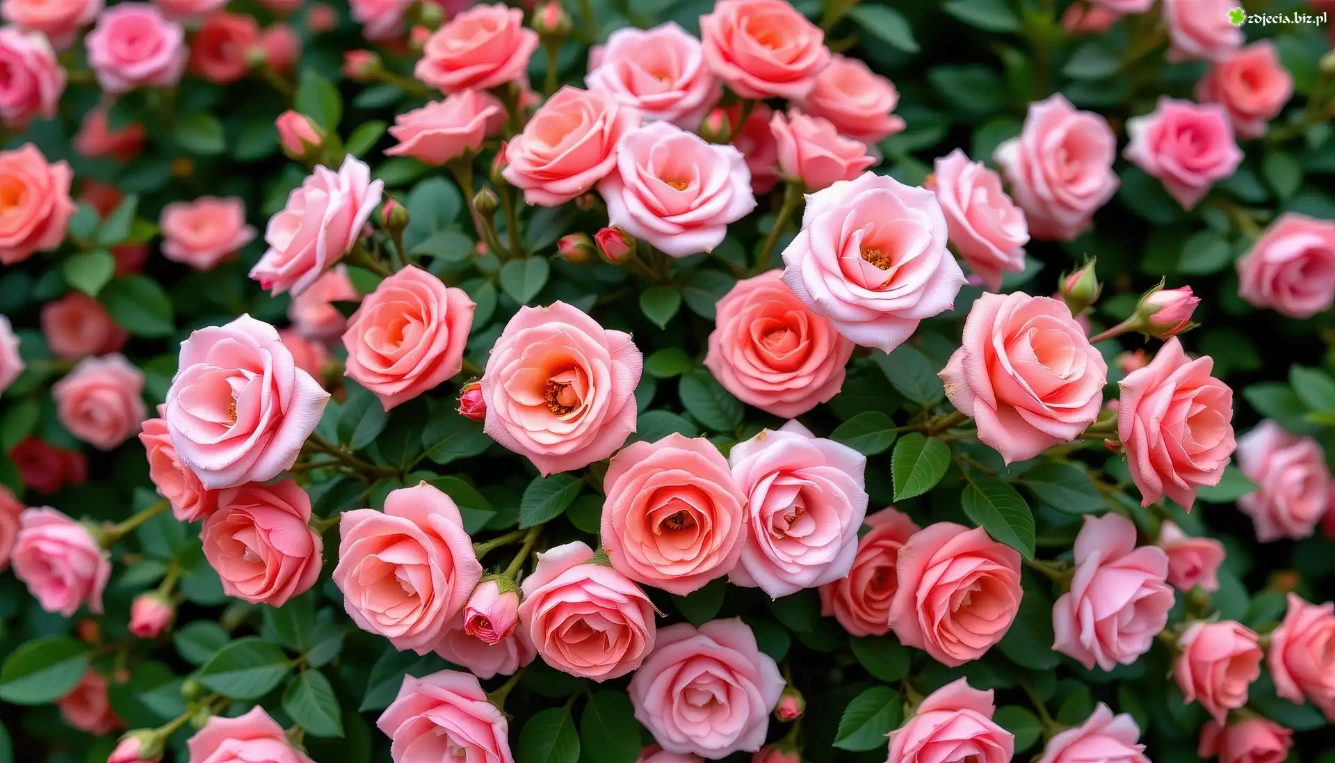 Zdjęcie Różowe, Rozwinięte, Róże, Listki