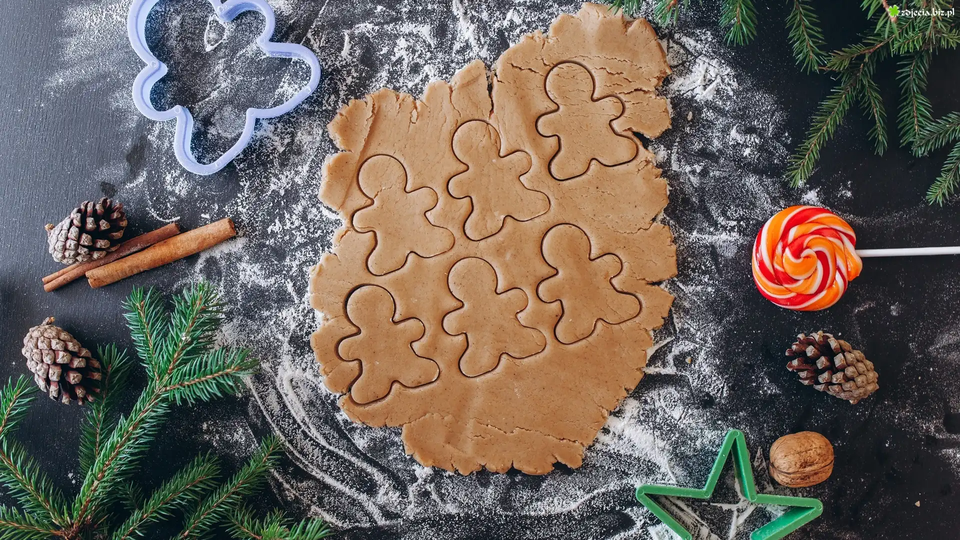 Zdjęcie Świąteczna, Kompozycja, Boże Narodzenie, Wypieki, Ciasto, Foremki, Pierniczki, Lizak