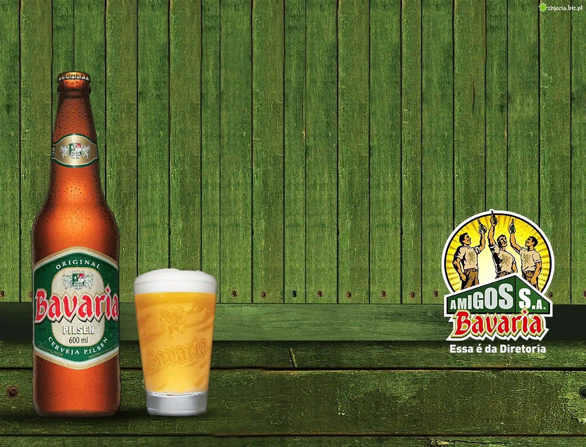 Logo, Bavaria, Butelka, Kufel Piwo, Bavaria, Butelki, Lód Logo, Bavaria, Zielone, Deski
