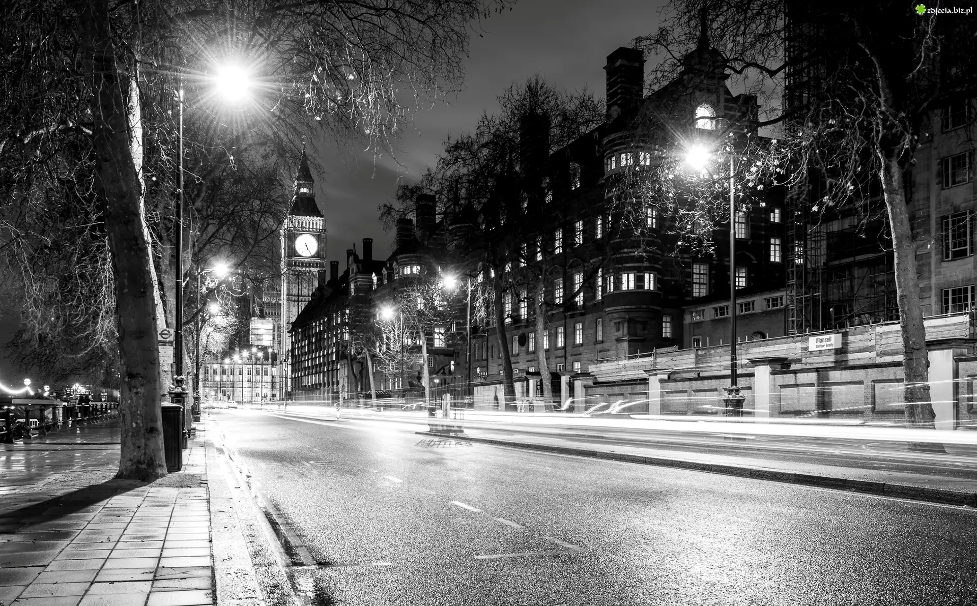 Zdjęcie, Anglia, Londyn, Big Ben, Ulica, Światła, Noc