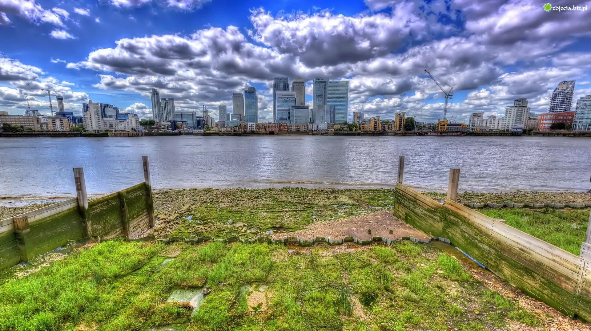 Zdjęcie Londyn, Chmury, Rzeka, Wieżowce