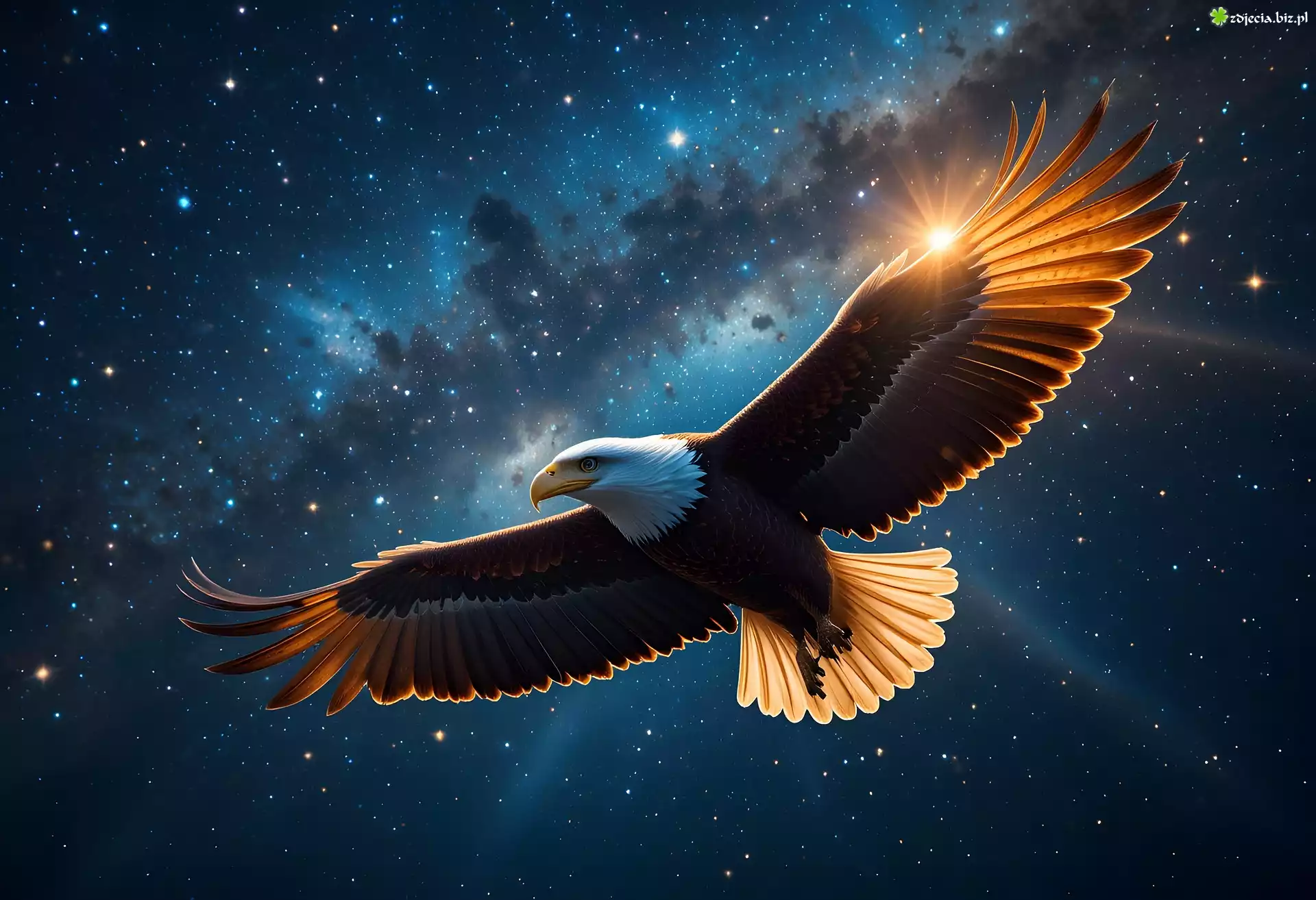 Zdjęcie Bielik amerykański, Niebo, Lot, Noc, Gwiazdy