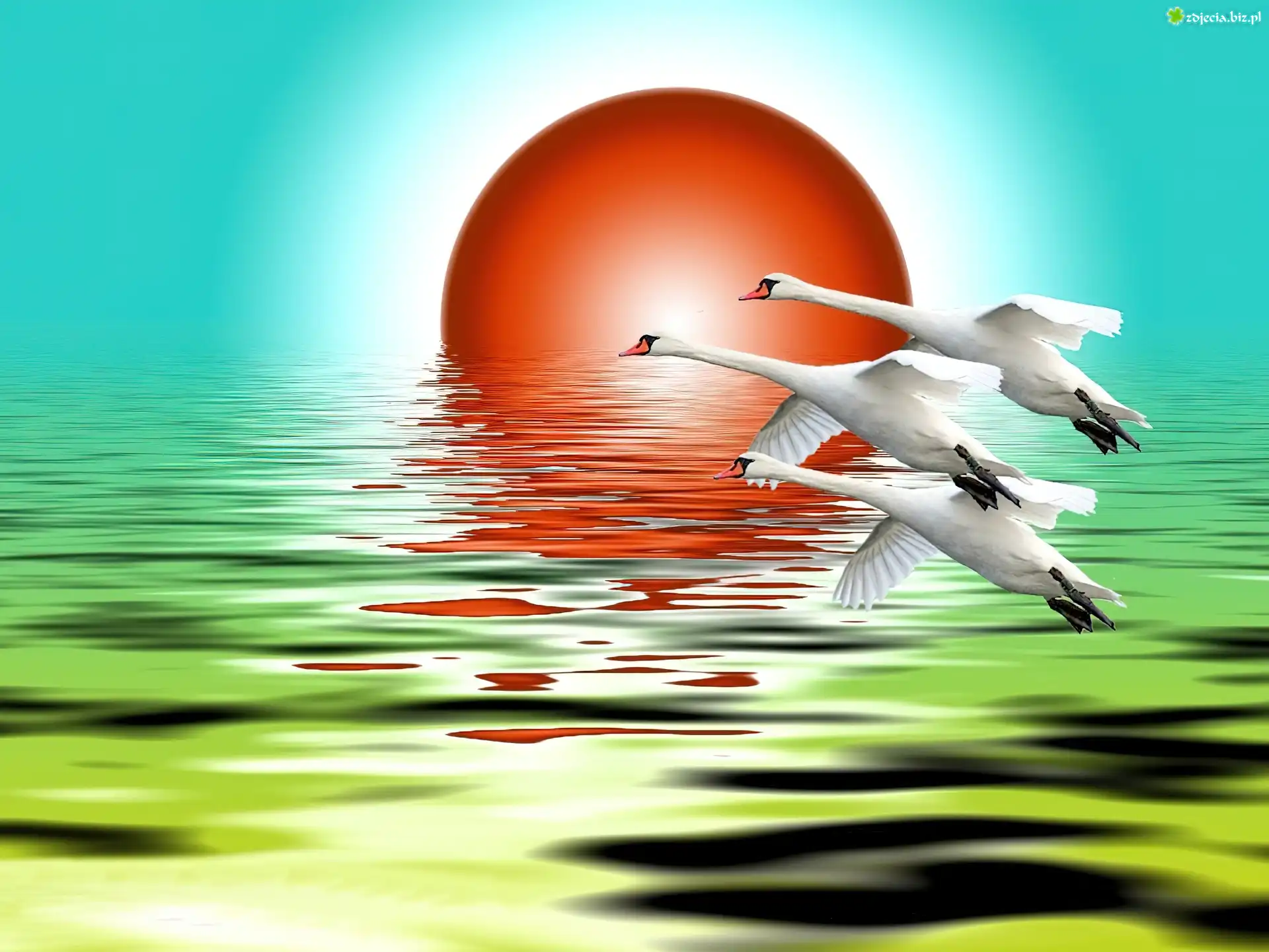 Zdjęcie Lot, Gęsi, Morze, Słońce, Reprodukcja, Obrazu