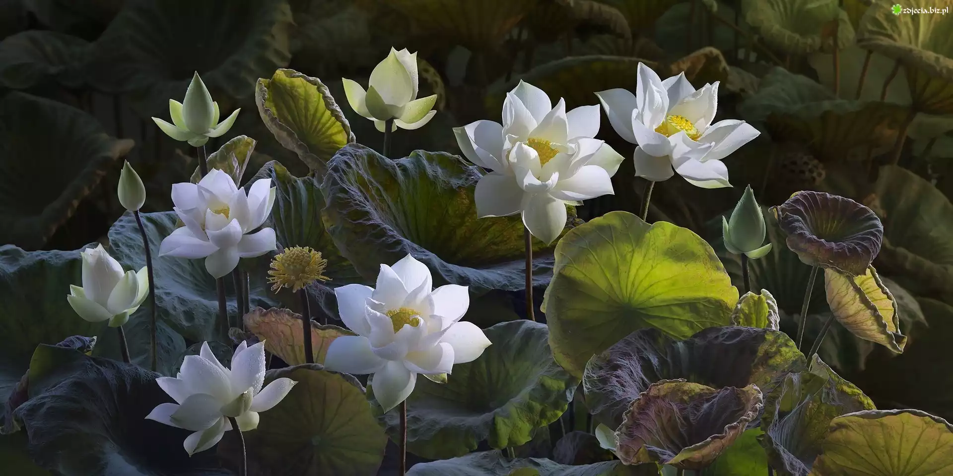 Zdjęcie, Kwiaty, Lotosy, Liście
