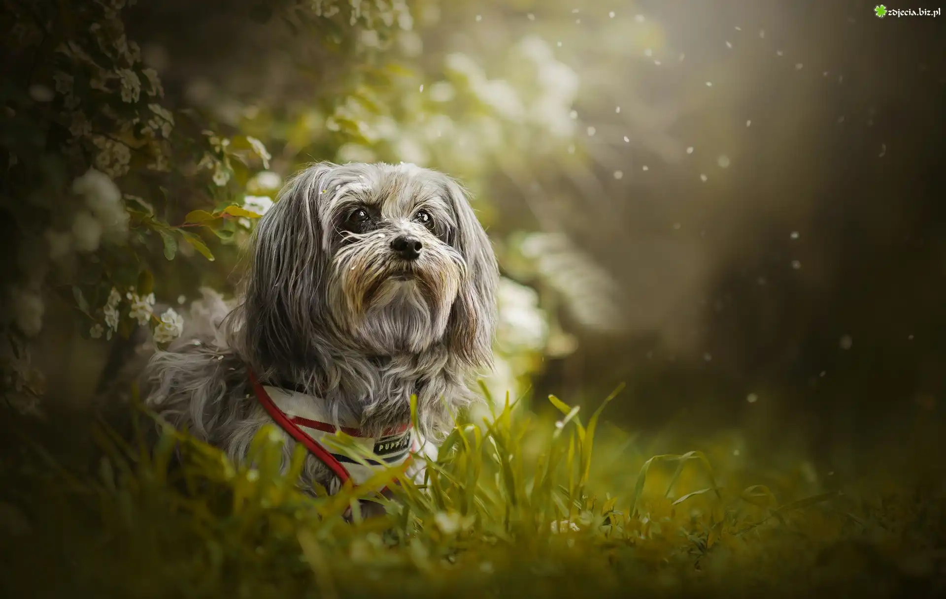 Lwi piesek, Trawa, Rośliny dwa, białe, Lwi pieski Dwa, Szczeniaki, Lwi Piesek, Trawa Róże, Szary, Piesek
