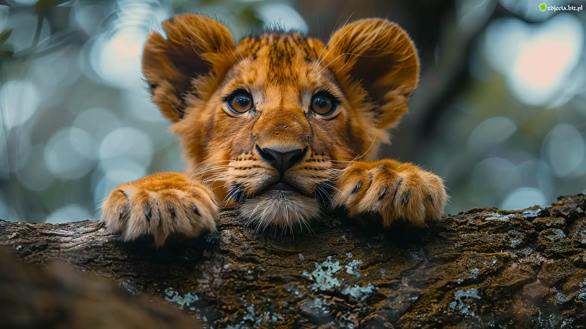 Zdjęcie Lew, Lwiątko, Drzewo, Grafika AI