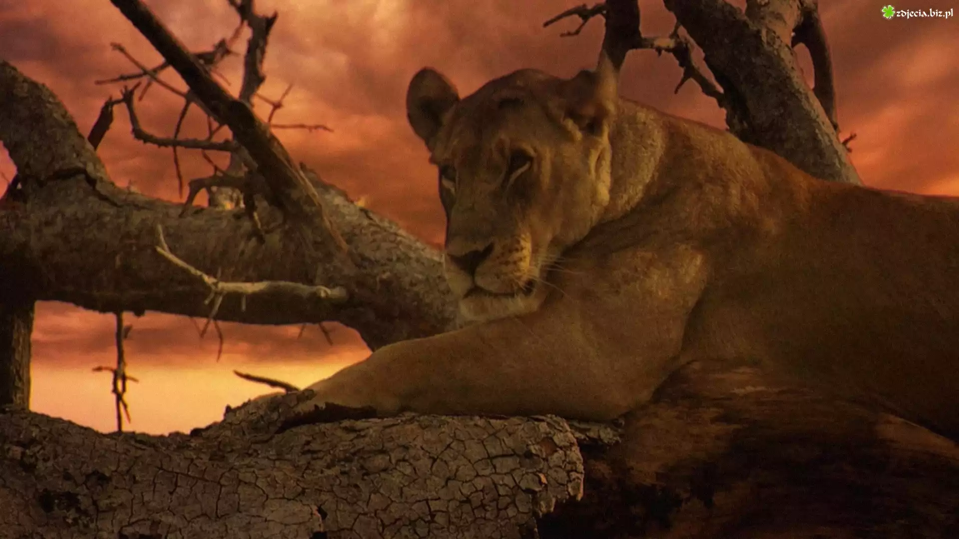 Zdjęcie Lwica, Drzewo, Zachód, Słońca