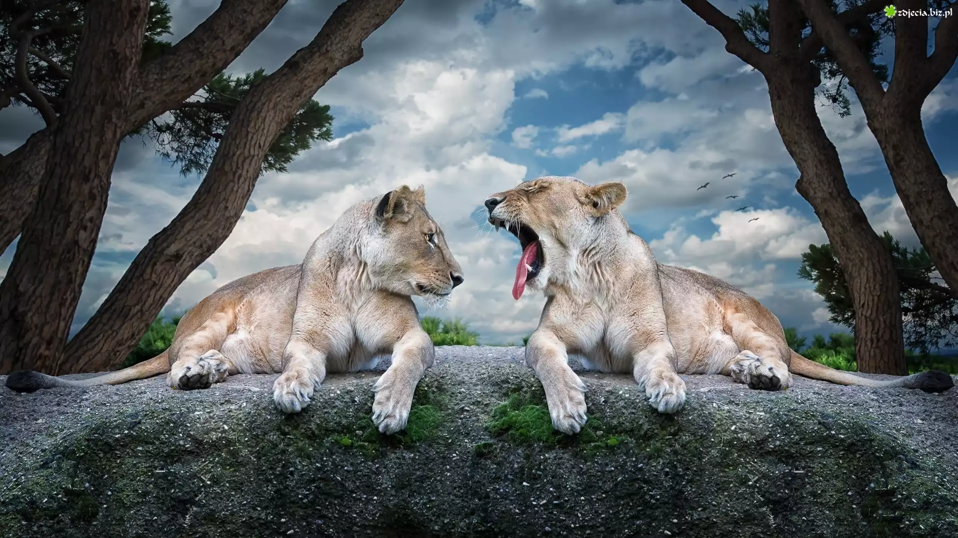 Zdjęcie, Dwie, Lwice, Skała