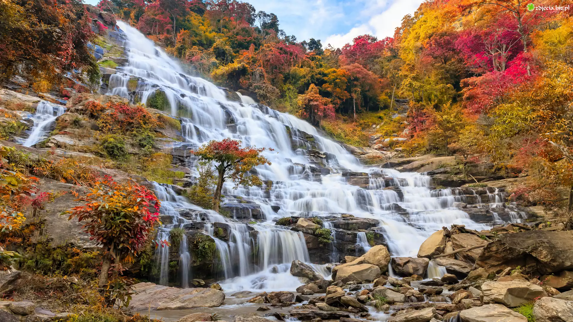 Zdjęcie Jesień, Las, Drzewo, Skały, Kamienie, Wodospad, Mae Ya Waterfall, Park Narodowy Doi Inthanon, Chiang Mai, Tajlandia |