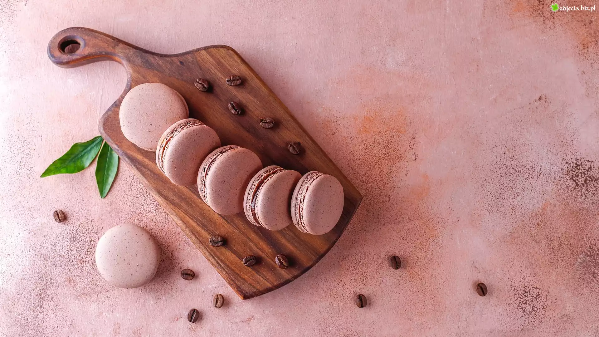 Zdjęcie, Makaroniki, Deska, Kawa, Ziarenka
