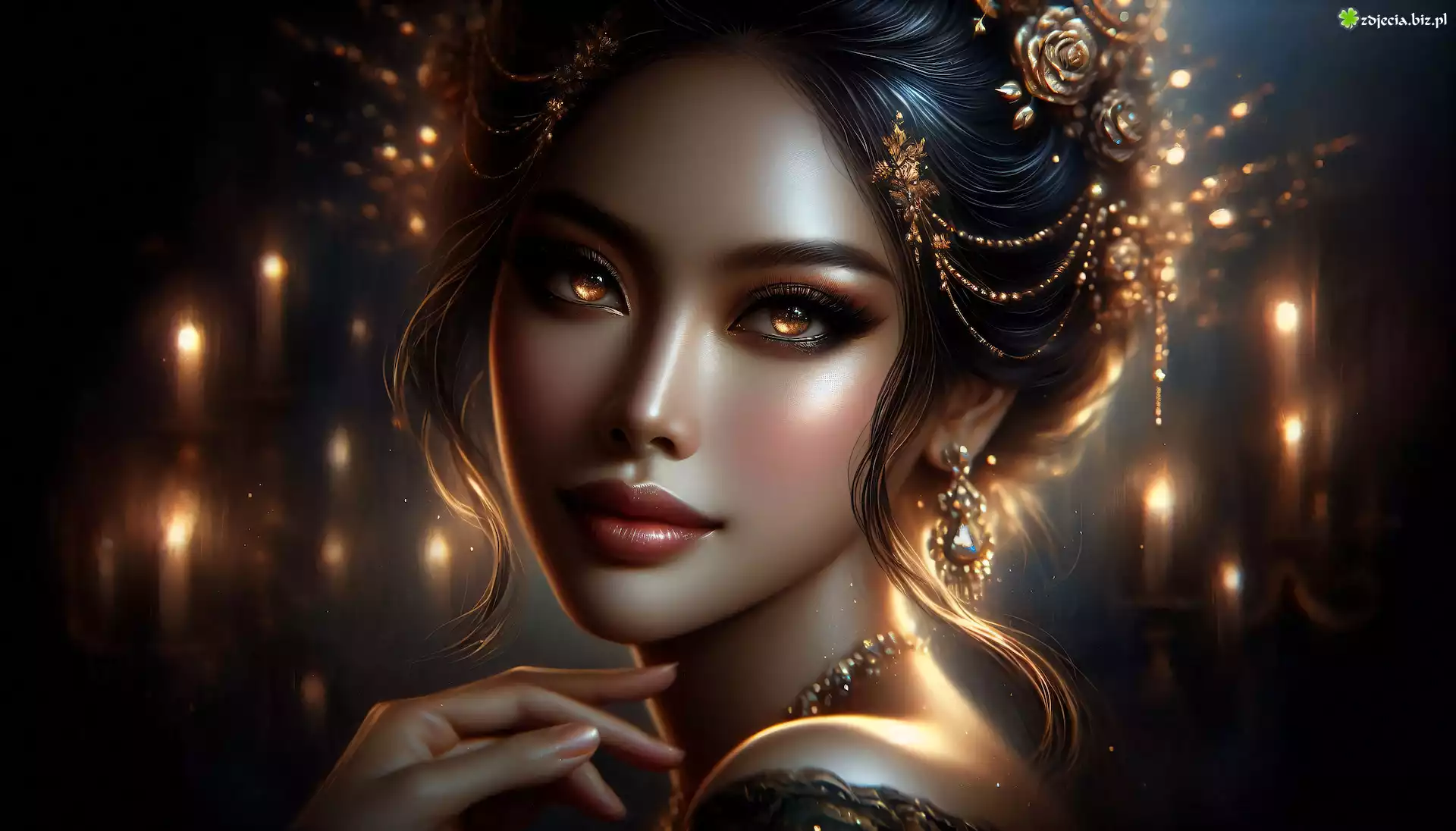 Zdjęcie Kobieta, Makijaż, Biżuteria, Grafika, Światła