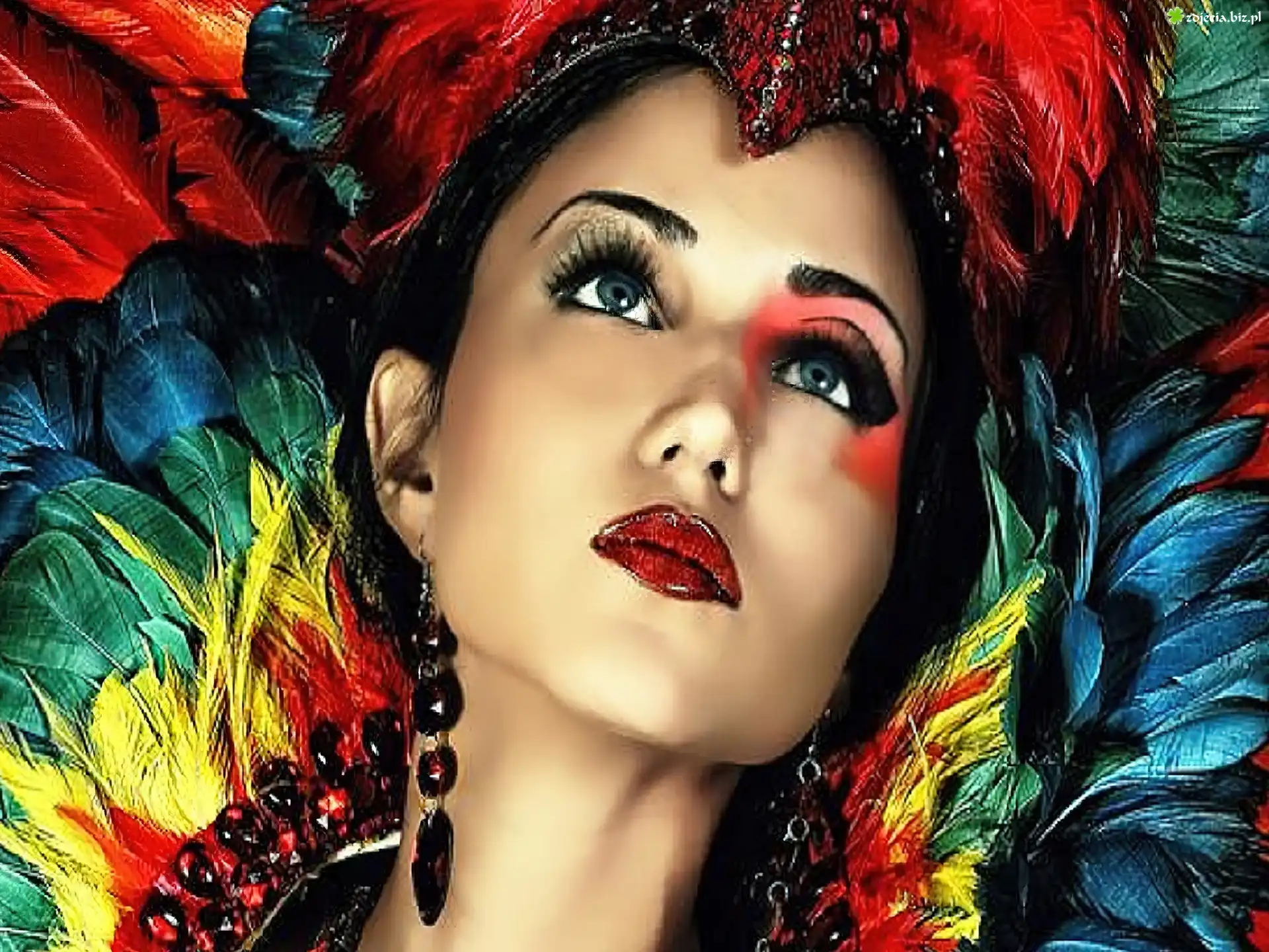 Zdjęcie Kobieta, Makijaż, Pióra