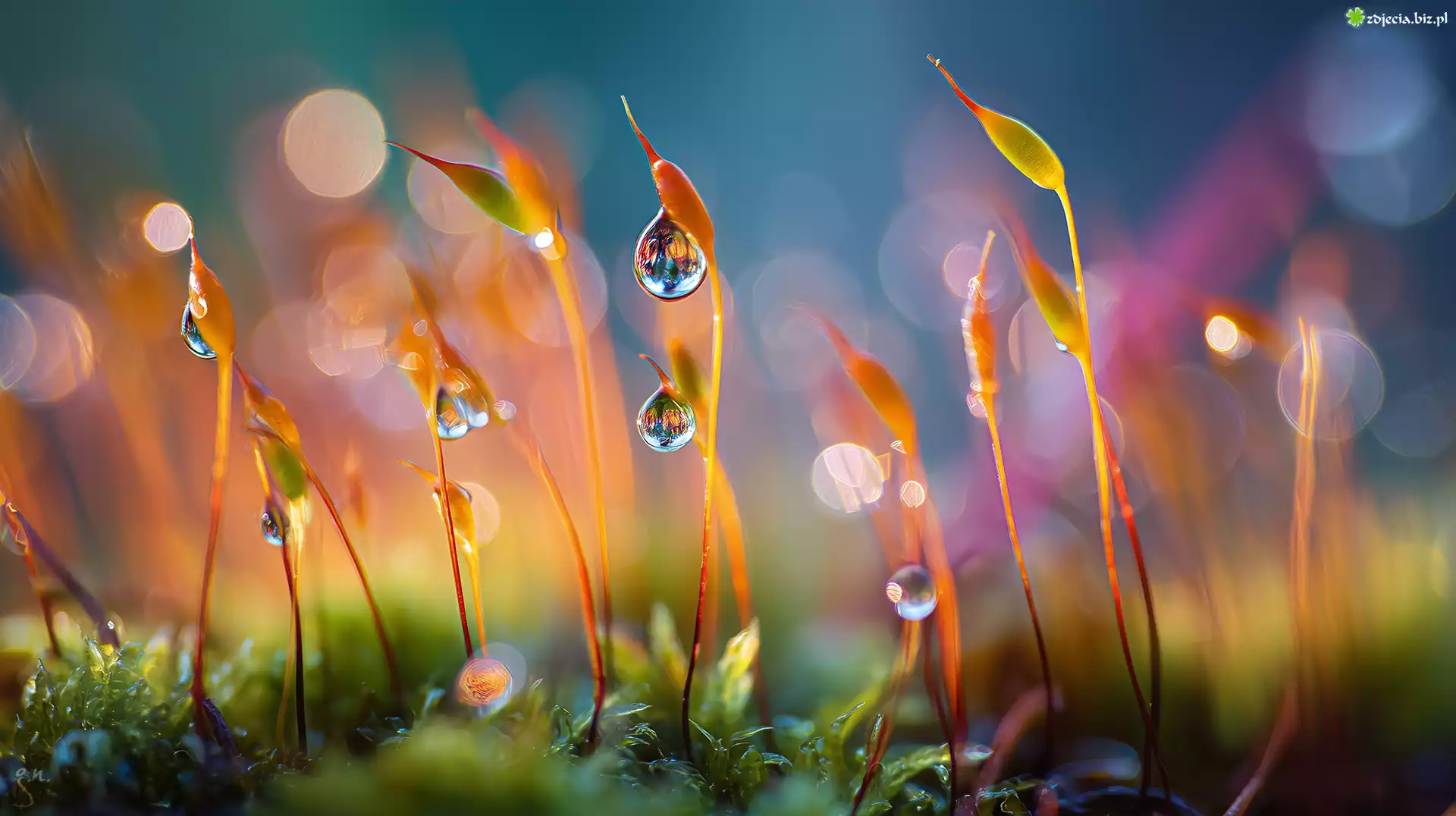 Zdjęcie Mech, Krople, Rosa, Makro, Grafika AI