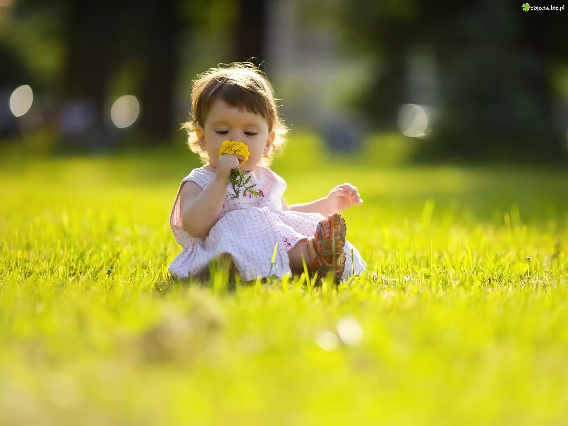 Zdjęcie Mała, Dziewczynka, Kwiatek, Trawa