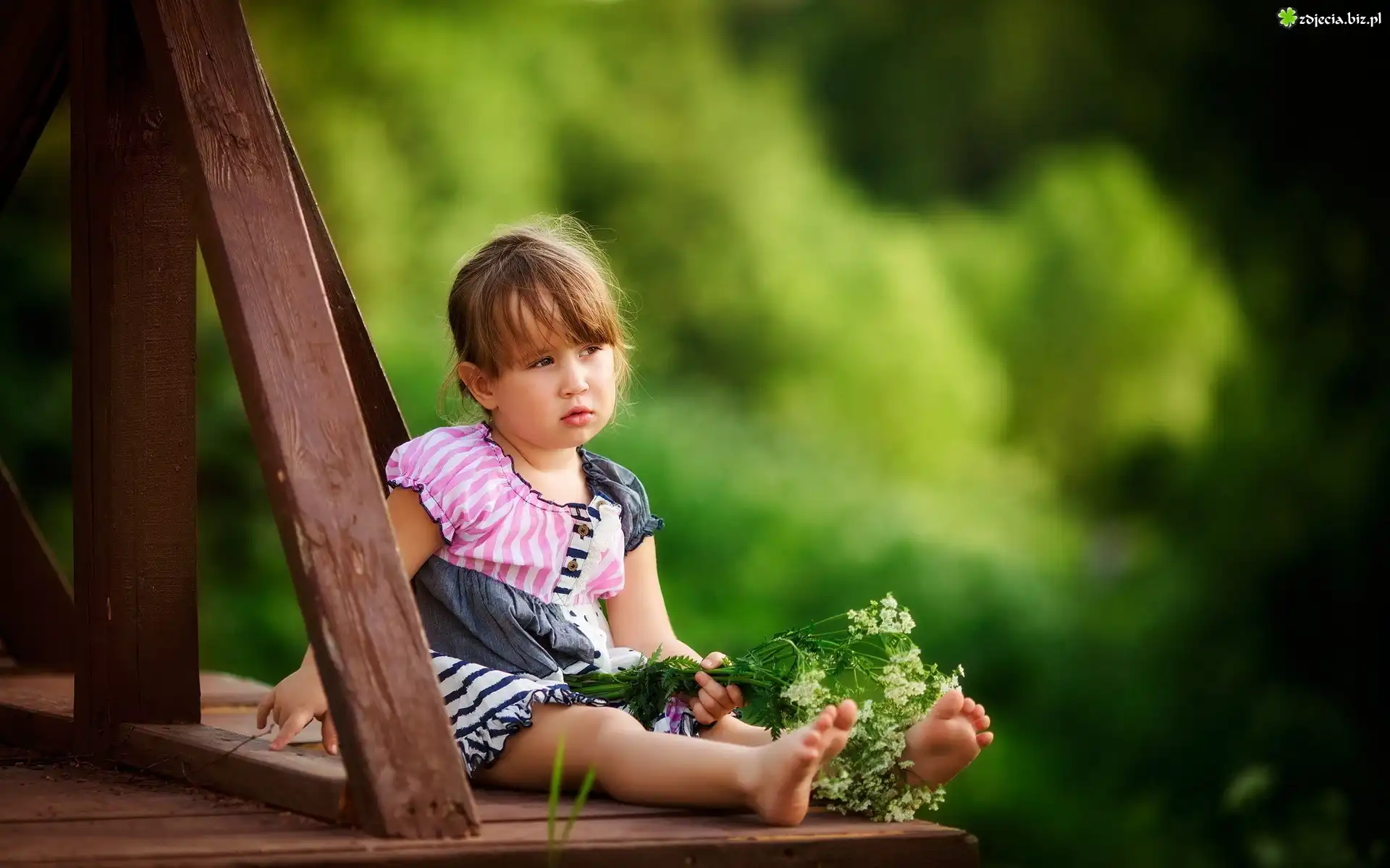 Zdjęcie Mała, Dziewczynka, Most, Bukiecik, Polnych, Kwiatów