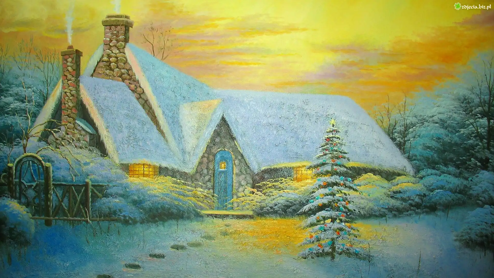 Zdjęcie Malarstwo, Obraz, Zima, Boże Narodzenie, Dom