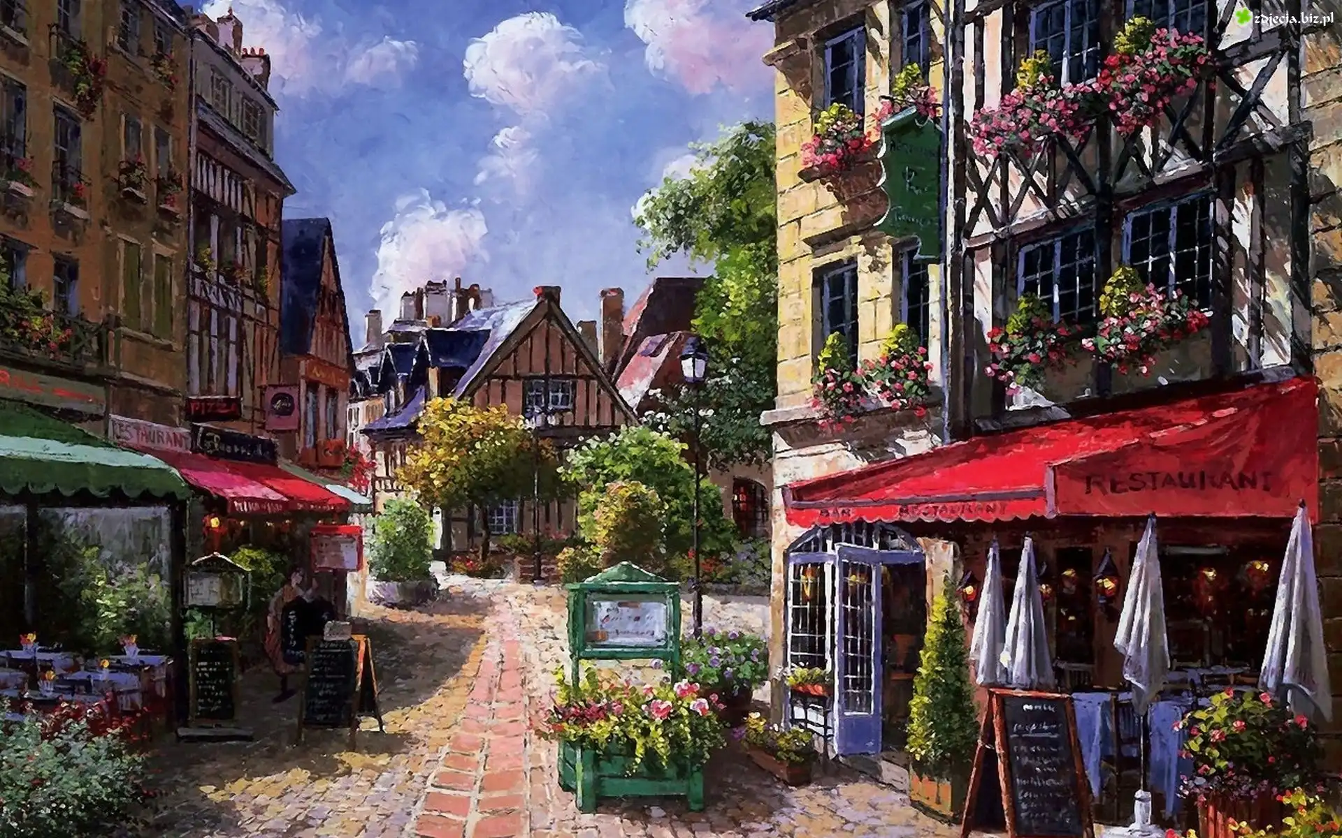 Zdjęcie Malarstwo, Obraz, Ulica, Domy