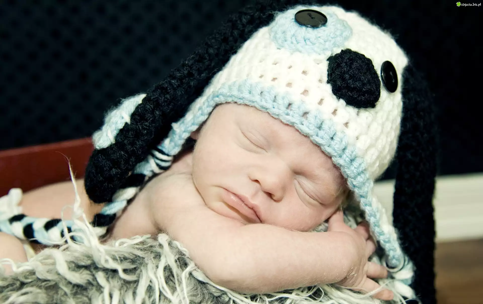 Zdjęcie Małe, Śpiące, Dziecko, Czapka