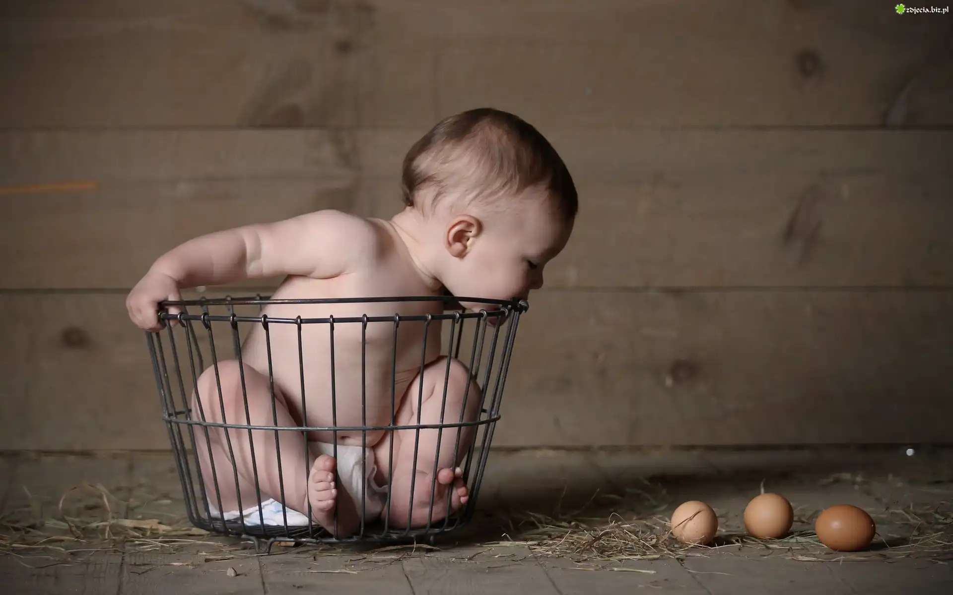 Zdjęcie Małe, Dziecko, Kosz, Jajka