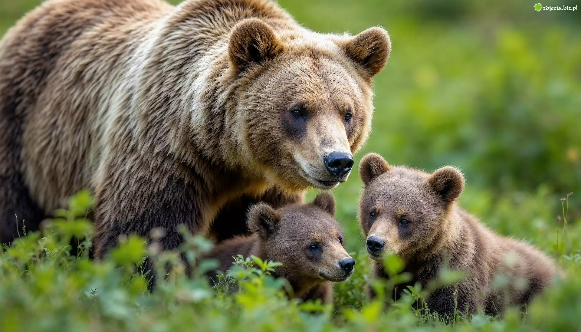Zdjęcie Niedźwiedzie brunatne, Dwa, Małe, Niedźwiadki, Trawa