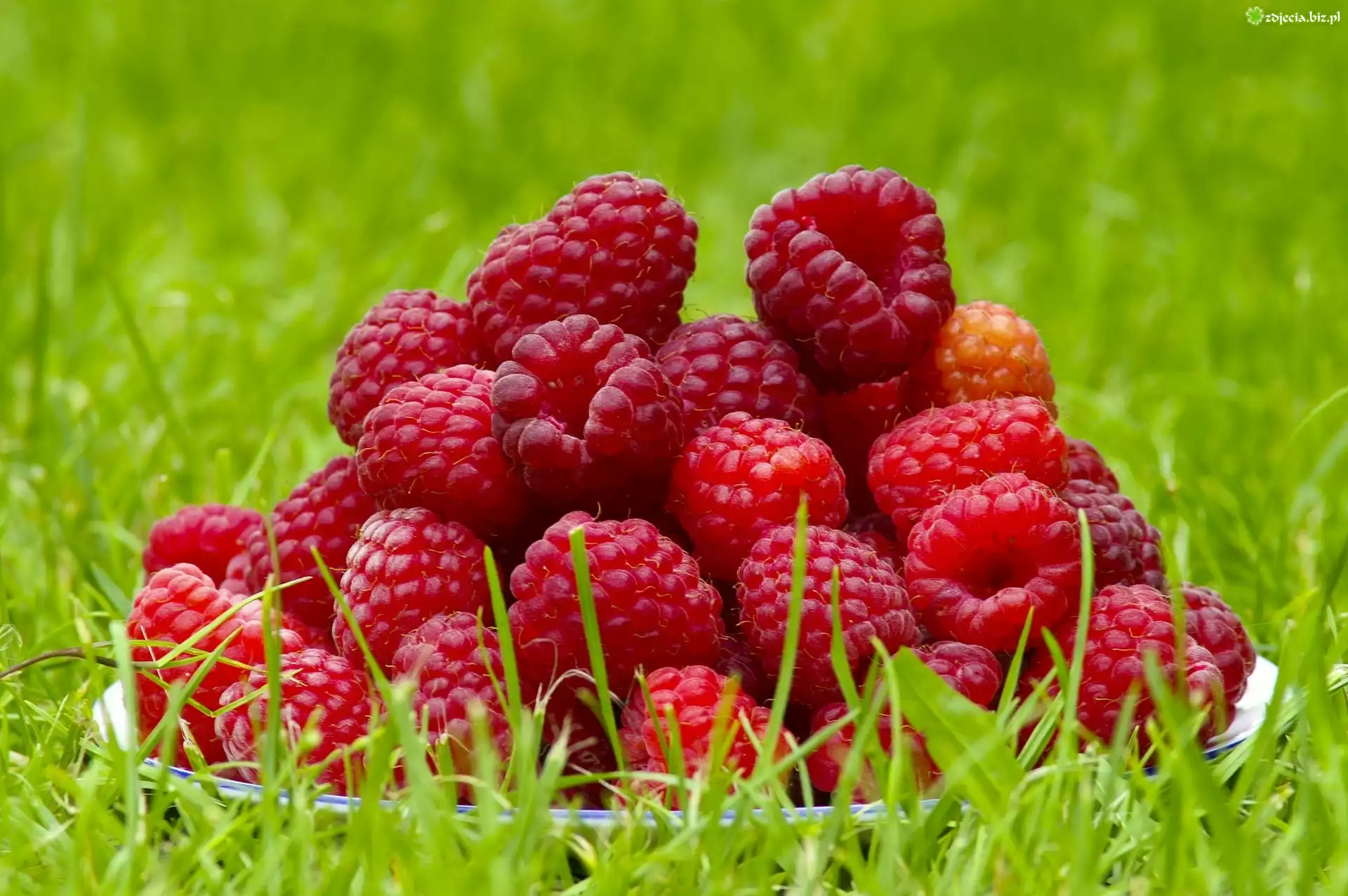 Zdjęcie Dojrzałe, Maliny, Trawa