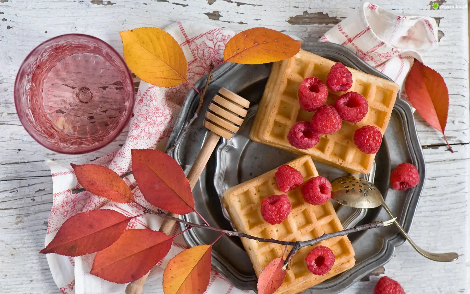 Zdjęcie Gofry, Maliny, Liście