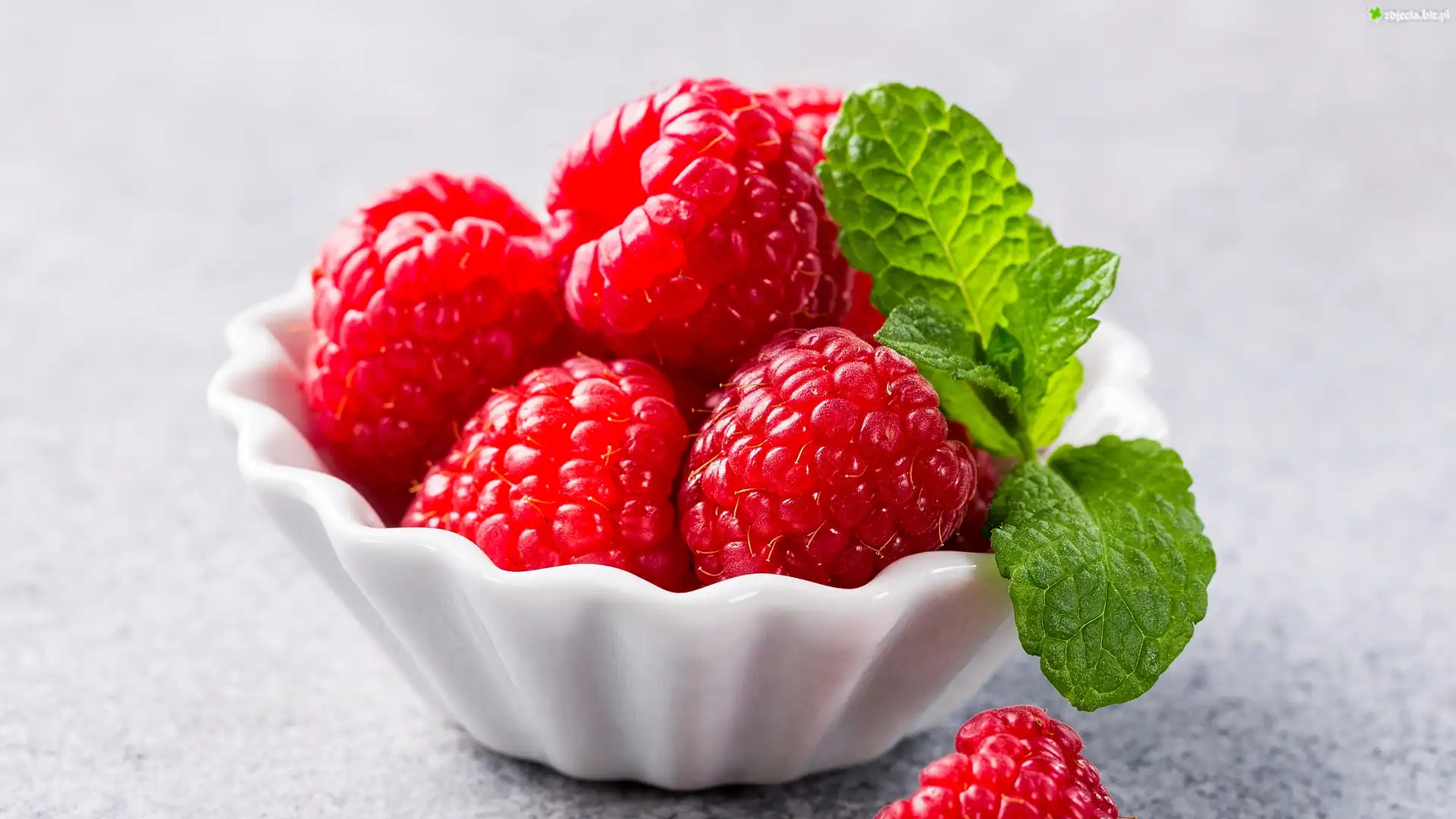 Zdjęcie Maliny, Miseczka, Listki, Mięta