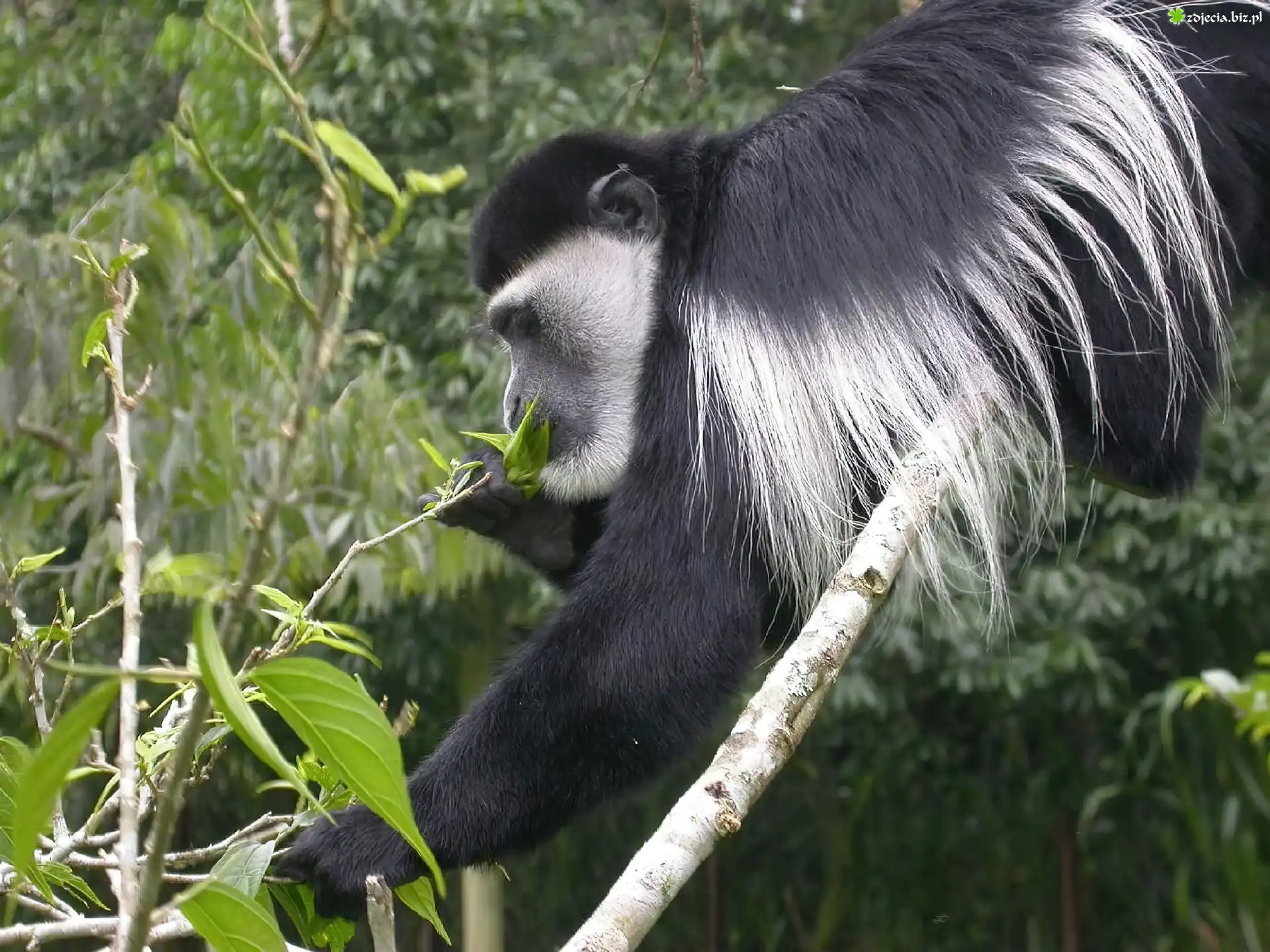 Zdjęcie Małpka, Colubus, Drzewo, Liście