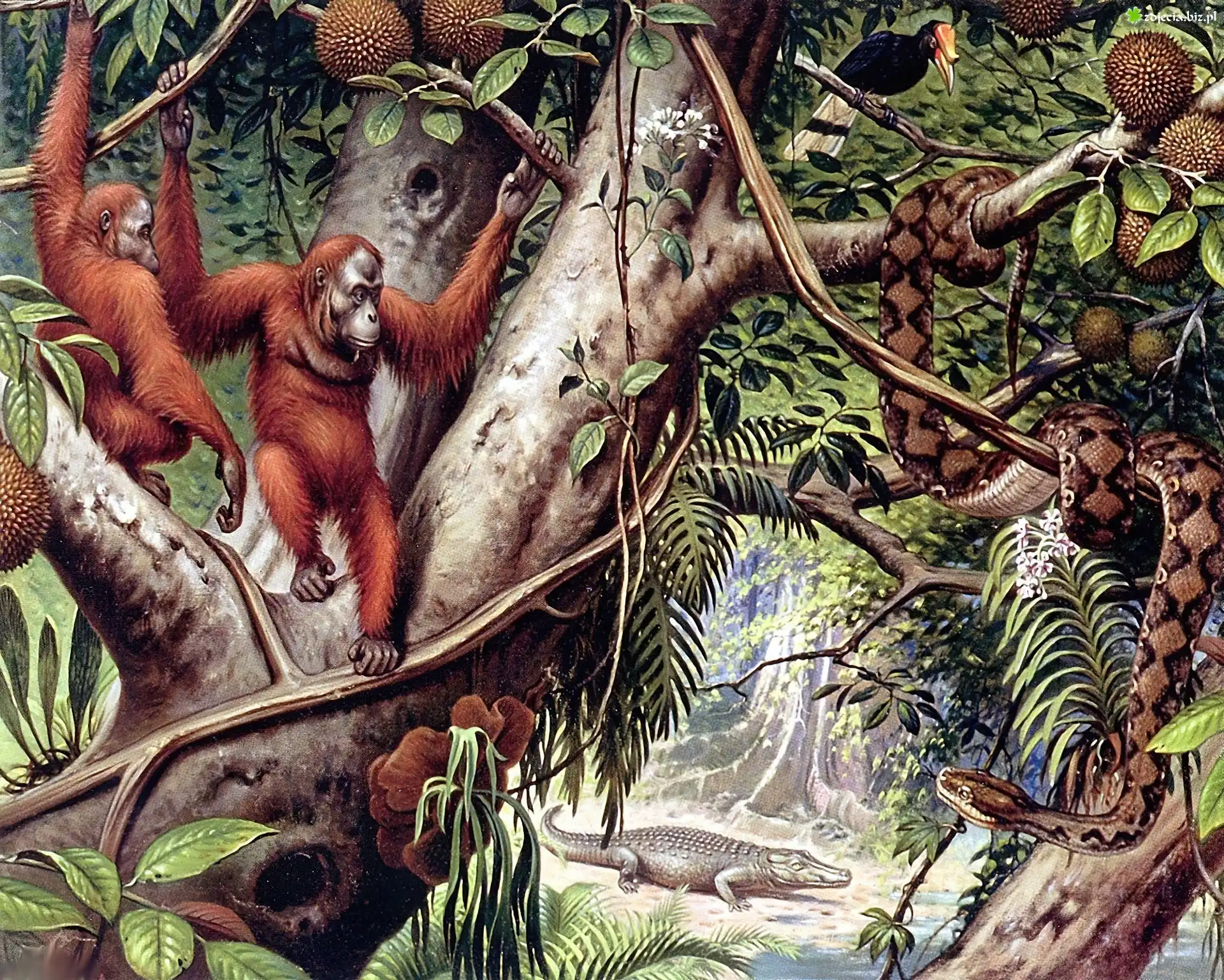 Zdjęcie Małpy, Orangutany, Dżungla, Liany