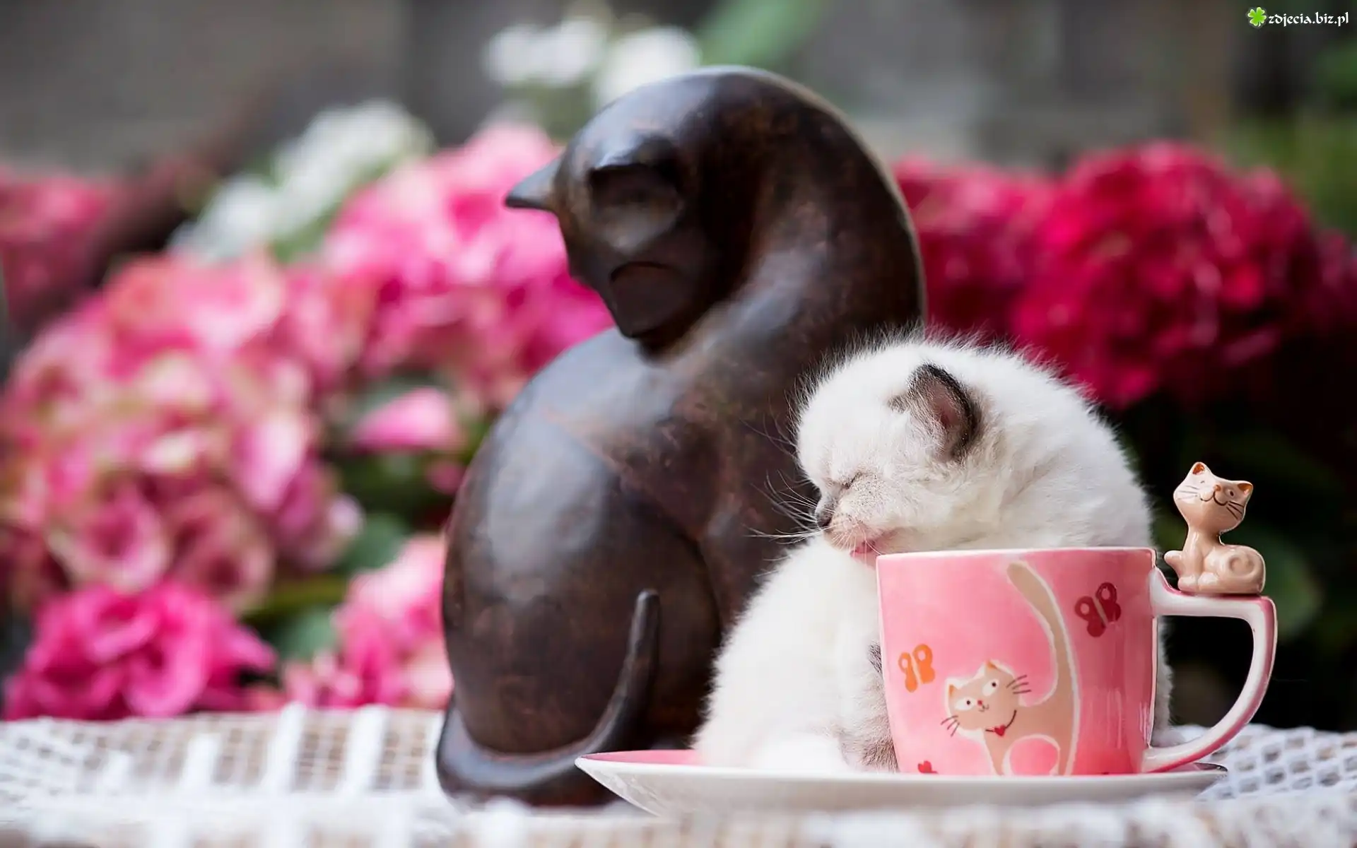 Zdjęcie Mały, Biały, Kotek, Kubek, Figurka, Koty